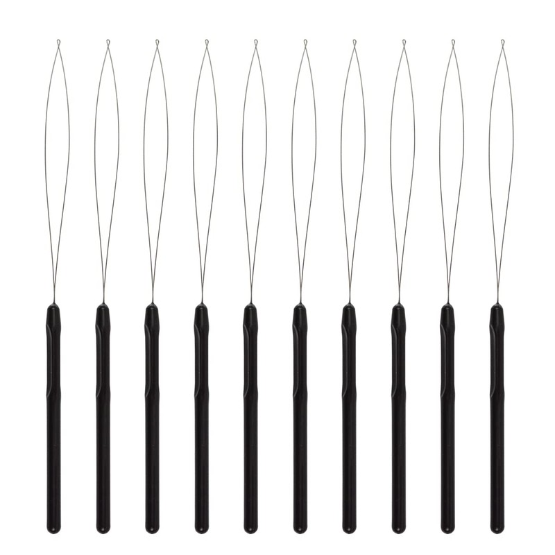 10 Pieces Hair Extension Loop Needle Threader Pulling Hook Tool and Bead Device Tool for Hair Extensions or Feather Extensions (Black)