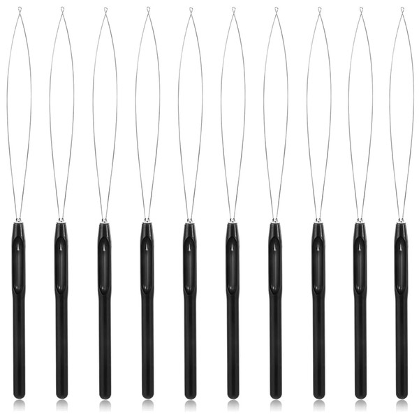 10 Pieces Hair Extension Loop Needle Threader Pulling Hook Tool, Bead Device Tool for Hair Extensions or Feather Extensions,Micro Loop Nano Beads Device(Black)