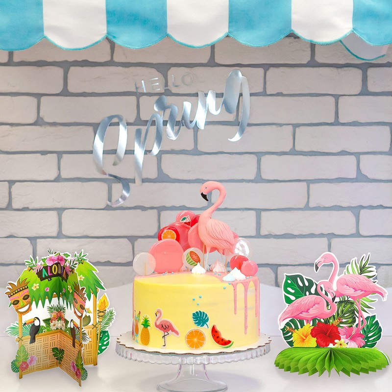 10 Pieces Hawaiian Luau Honeycomb Table Centerpiece Tiki Honeycomb Centerpieces Tropical Table Centerpiece 3D Flamingo Table Decorations for Hawaiian Luau Party Birthday Wedding Home Favor