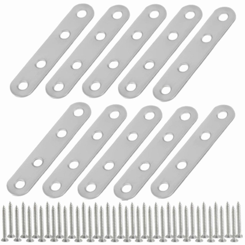 10 pieces I-shaped metal fittings, joint brackets, metal fittings, joint fittings, fixed plates, shelf brackets, flat repair plate, 40 stainless steel screws included (3.8 x 0.6 x 0.1 inches (96 x 16