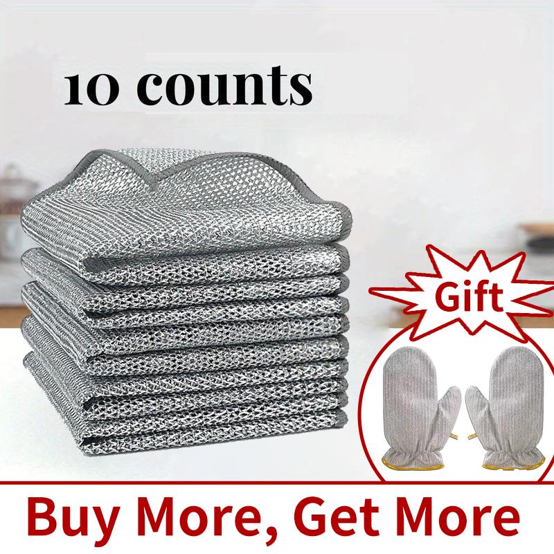10 Pieces of Dishwashing Rags (Includes Dishwashing Gloves), Multipurpose Non-Scratch Wire Dishcloths, Wet and Dry Use, Reusable Kitchen Cleaning Cloths, Suitable for Sinks and Pans, Silver Removable, Washable and Durable. - specification: 10 Pieces of D