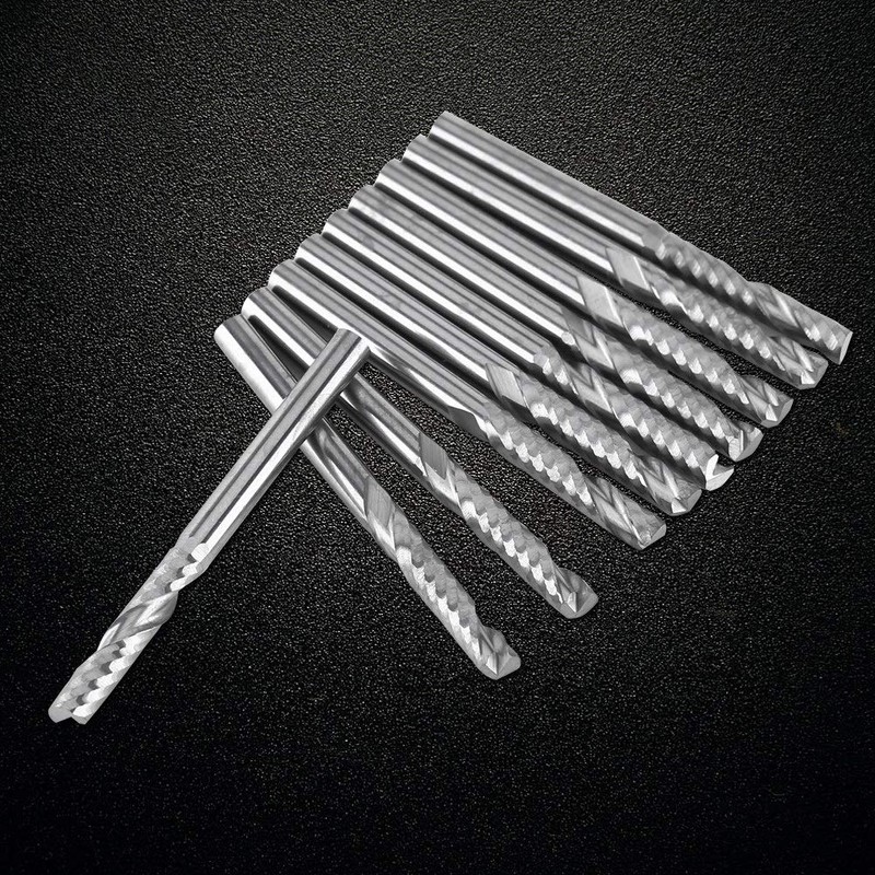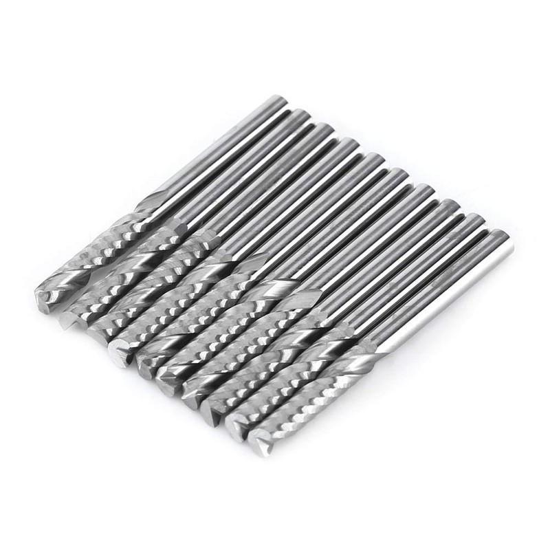 10 Pieces Single End Mill Flute Carbide CNC Burr Cutter Engraving Drill Tools Cutter Bits for Wood Acrylic Cutting 3.175 x 15 mm