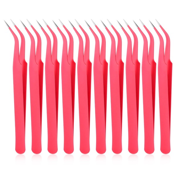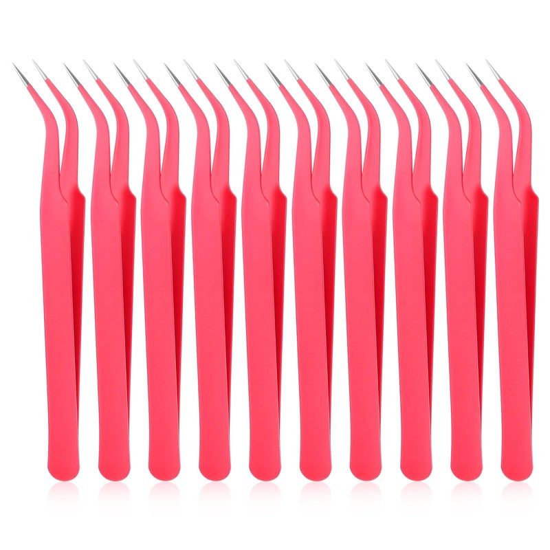 10 Pieces Tweezers for Crafting Stainless Steel Curved Pointed Tweezers Precision Tweezer with Protective Cover for Eyelash Extensions Stickers Rhinestones Crafts (Pink)