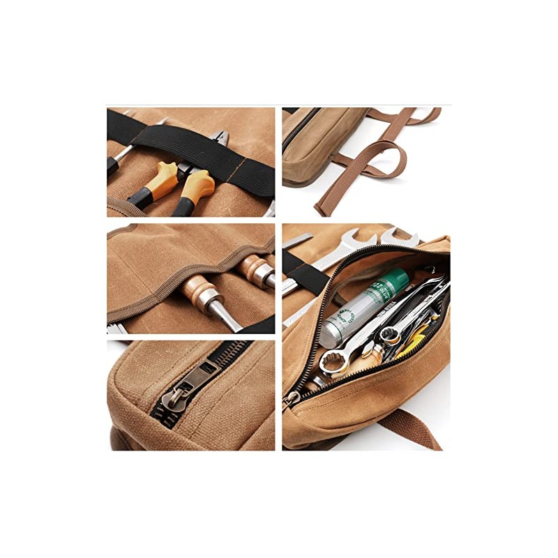 - Easy to carry: compact and lightweight. Canvas rope allows you to open and close the tool bag quickly, not spread, safe transport.