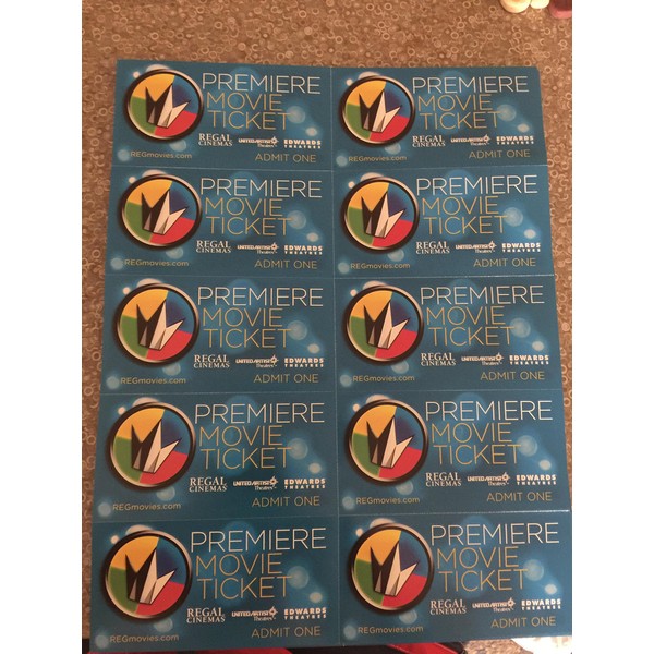 - 10 Regal Entertainment Group movie tickets. Valid at all Regal, Edwards, and UA Theaters