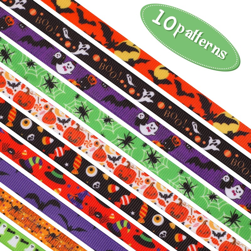 - 10 Styles designs for Halloween: these ribbons for Halloween party wreath are designed with 10 different styles, with pumpkin, spider, bat, candy, hat, ghost, and other patterns to make your ribbon colorful and attractive when in use; Each style is well printed and not easy to fade, suitable for wrapping up your presents
