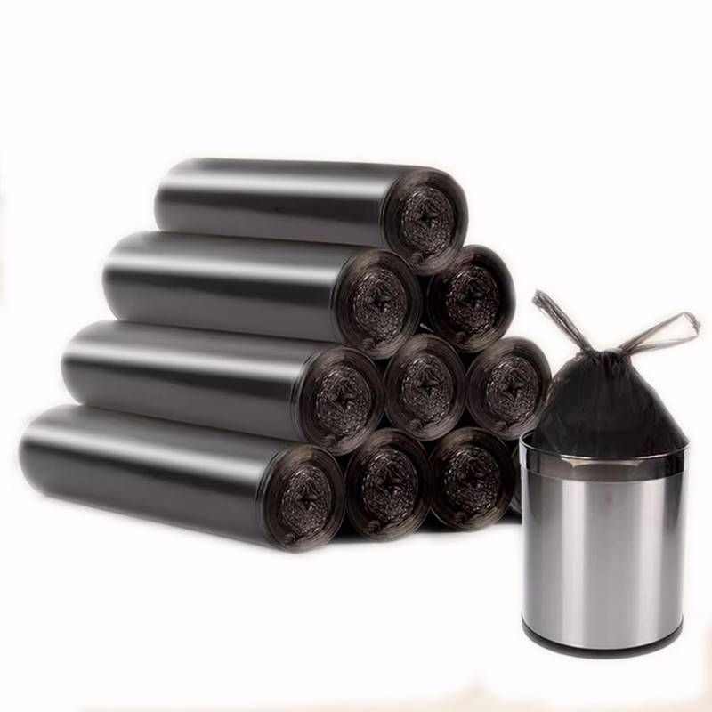 - Premium PE Material Our garbage bags are made of the latest pure HDPE material, which ensures no unpleasant smell and higher environmental friendliness. This high quality material improves the strength of our garbage bags compared to regular bin liners. As a result, you will find that our trash bags are not easily fragile, leak-proof, exceptionally sturdy and incredibly durable.