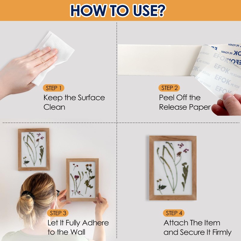 - Multiple Uses: This mount tape is suitable for fixing a variety of items, for example, car decorations, photo frames, posters, carpets and so on. It can replace mechanical fasteners (rivets, welding, screws) or glue, avoiding procedures like drilling, grinding, polishing, screwing, welding and cleaning