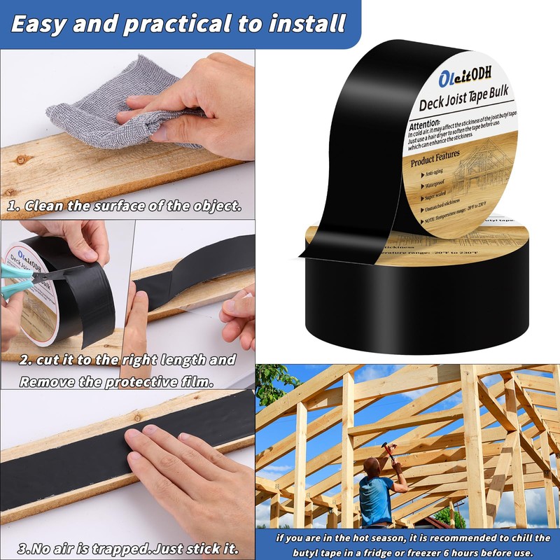 - 【Wide Temperature Range】deck joist tape to be used with confidence in temperatures ranging from 20°F to 230°F.Joist tape for decks Creates a waterproof membrane that prevents wood rot and decay.