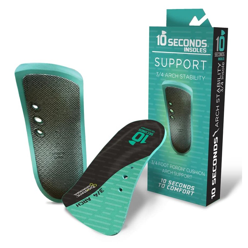 10 Seconds Arch Stability ¾ Insole 3715 – High Arch, Firm Support, Designed to Relieve Arch Strain and Overpronation, Fits Low Profile Footwear, Biostatic Antimicrobial Topper (W 6.5, M 5)