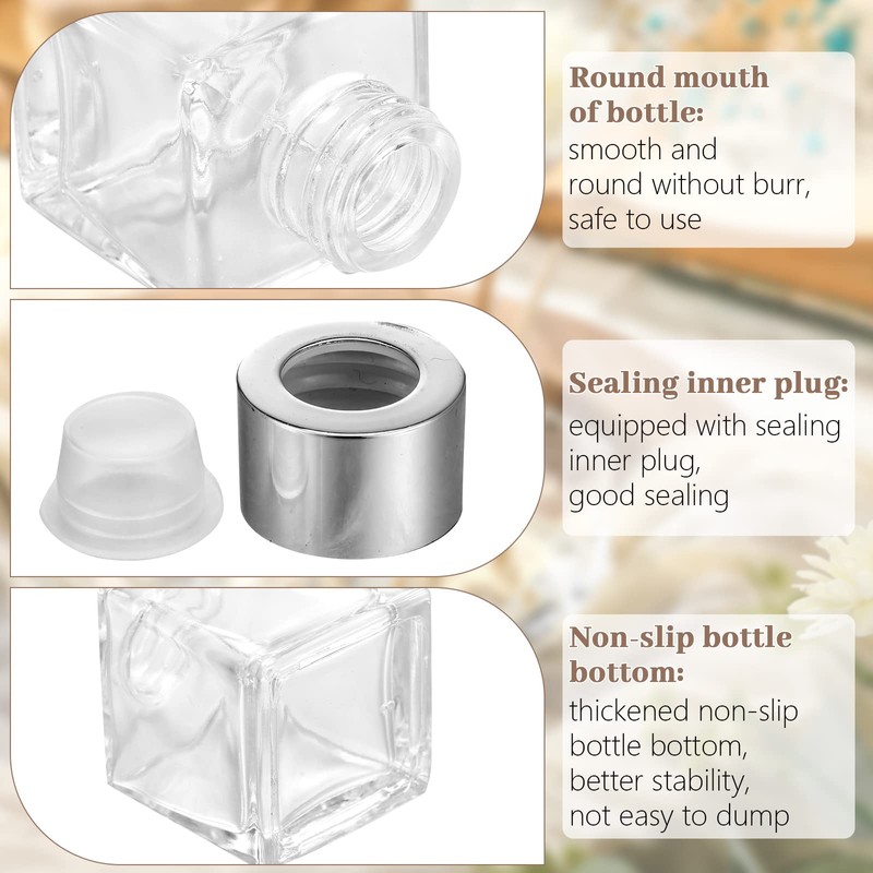 10 Set Square Glass Diffuser Bottles with Silver Caps Refillable Diffuser Bottles Set 1.7oz Empty Reed Diffuser Jar Ideal for Essential Oils Reed Sticks Home Fragrance