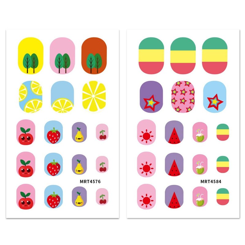 - Package Contain:10 sheets of nail polish strips for kids.Each nail strip includes 18 full nail wrap stickers.Crafted with child-friendly vinyl,gentle on child's delicate skin and nails