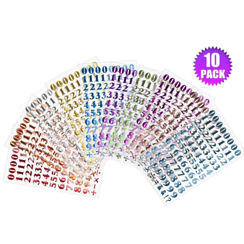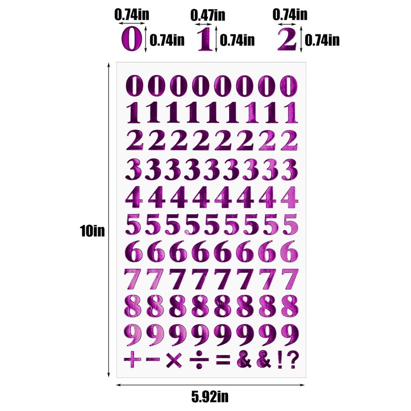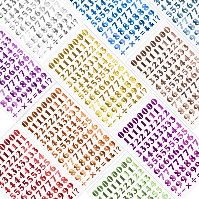 - MATERIAL: PU Colorful Letter Number Stickers .10 Sheet 94pcs/Sheet Total 940pcs.Color:Blue Red Purple Silver Orange Coffee Yellow Green Gold Hot Pink,10 Colors.It is safe and environmentally friendly.