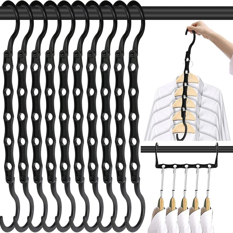 10 space saving hangers, sturdy 5-hole cascading hangers for organizing excess clothes, essential for dormitories