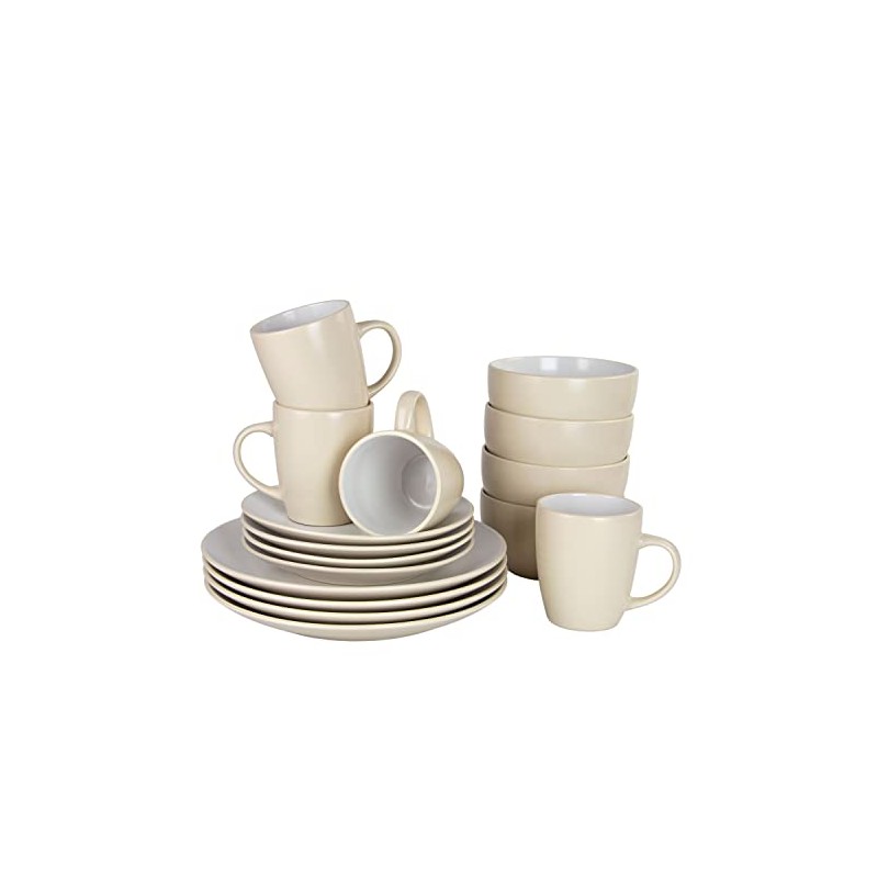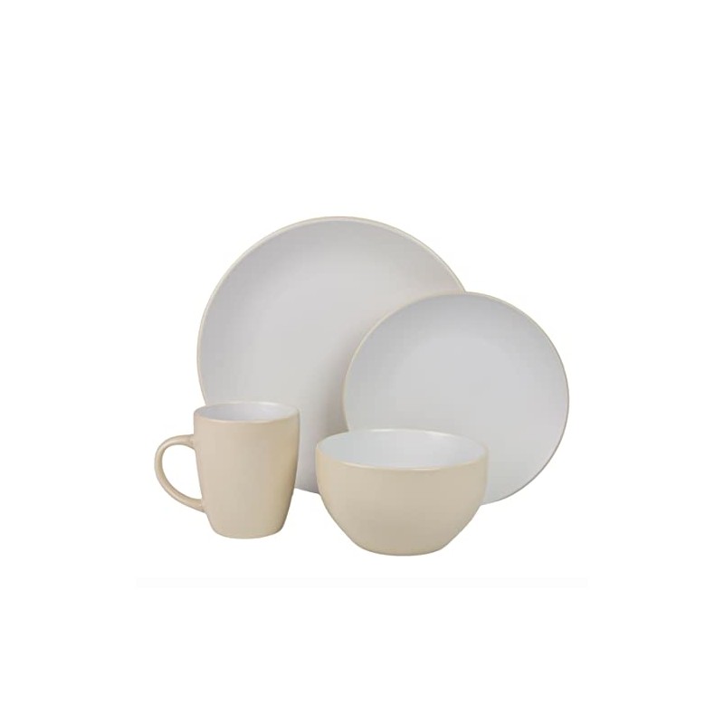 10 Strawberry Street Two Tone Coupe Dinnerware Set, 16 pc, Tan/White