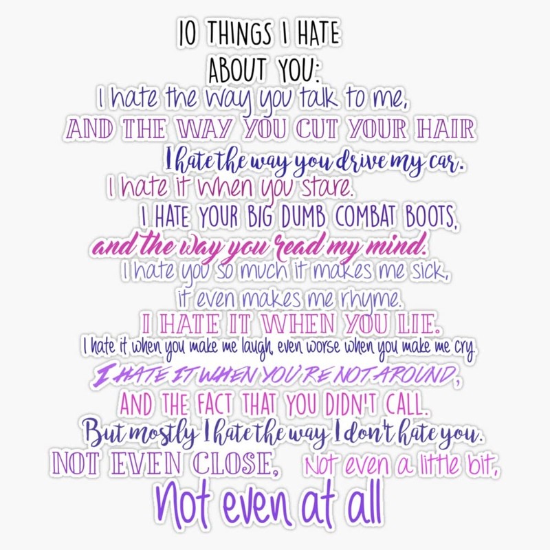 10 Things I Hate about You Bumper Sticker Vinyl Decal 5 inches