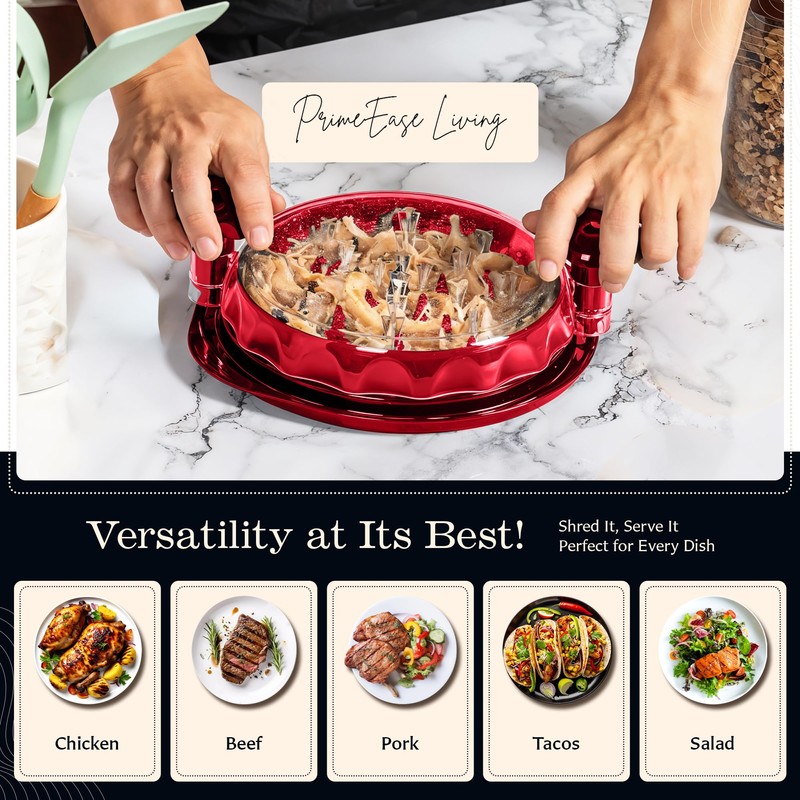 10" Twist-Action Meat Shredder Set | XL Capacity for Chicken, Pork & Beef | Includes Tongs, Non-Slip Mat & Cleaning Brush | Premium Dishwasher-Safe Kitchen Tool for Easy Pulled Meats USA Quality | Red