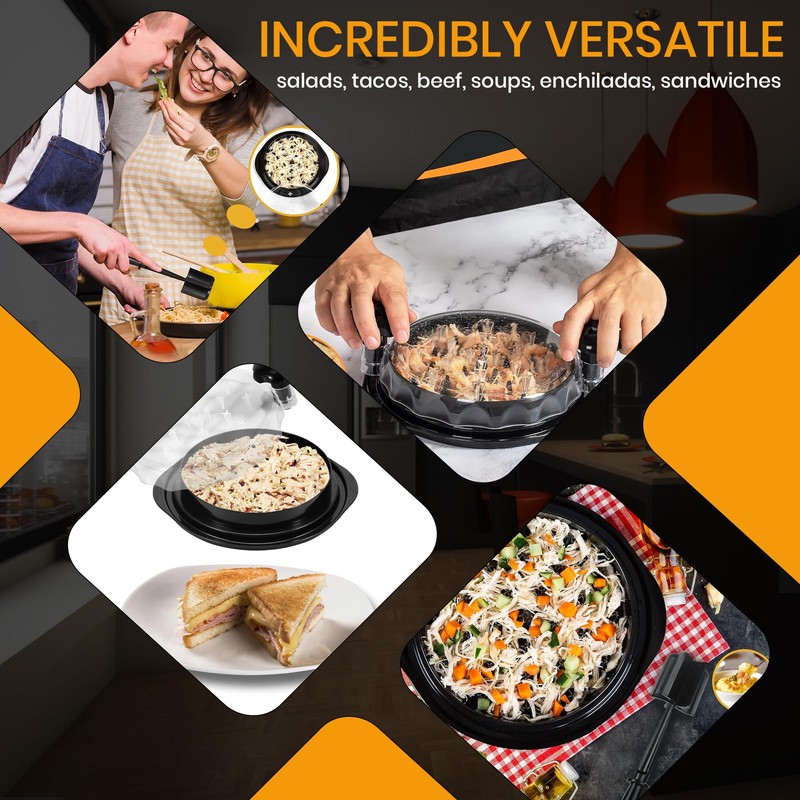 - ✿【Effortless Shredding with Innovative Design】– Our large 10-inch chicken shredder tool features an advanced twist mechanism and improved inner structure, allowing you to process meat quickly and efficiently. The ergonomic handle and transparent lid let you customize your shredding texture with ease, perfect for creating delicious tacos, salads, and BBQ sandwiches in minutes.