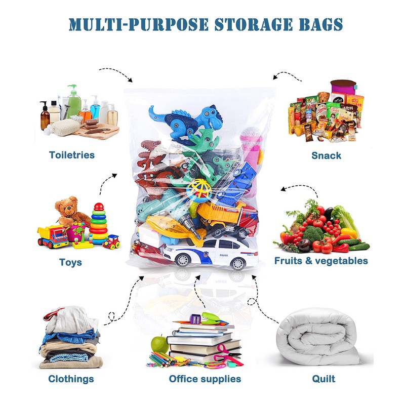 - 【Bolsas de plástico grandes multiusos: nuestras bolsas de plástico transparentes grandes pueden guardar fácilmente todos tus artículos de tocador, herramientas para el cabello y más en bolsas separadas y luego almacenarlas en tu maleta o bolsa de noche, estas bolsas también protegerán tu ropa de cualquier derrame que pueda ocurrir. Guarda ropa de temporada cuando no esté en uso y otros juguetes para mantener tu hogar organizado y libre de desorden. Ideal para viajes, envíos, mudanzas, almacenamiento