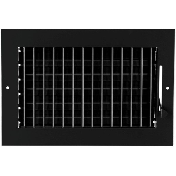 10"w X 6"h Adjustable AIR Supply Diffuser - HVAC Vent Cover Sidewall or Ceiling - Grille Register - High Airflow - Black [Outer Dimensions: 11.75"w X 7.75"h]