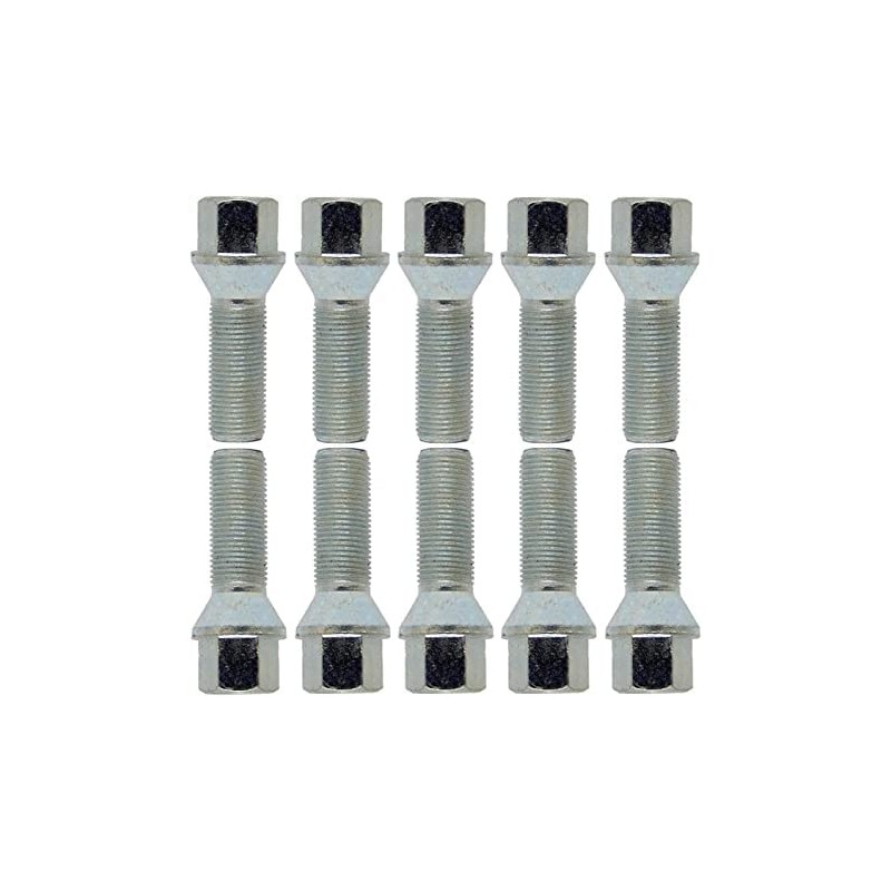 - Before ordering, please pay attention to the correct collar shape (cone or ball collar) and the correct thread length and spanner width! Depending on the rim type (aluminium rim or steel rim) or with or without wheel spacers, different lengths are required. The collar type and thread also differs from vehicle manufacturer to manufacturer. If wheel spacers are used, the width of the wheel spacers must be added to the length of the original wheel bolts.