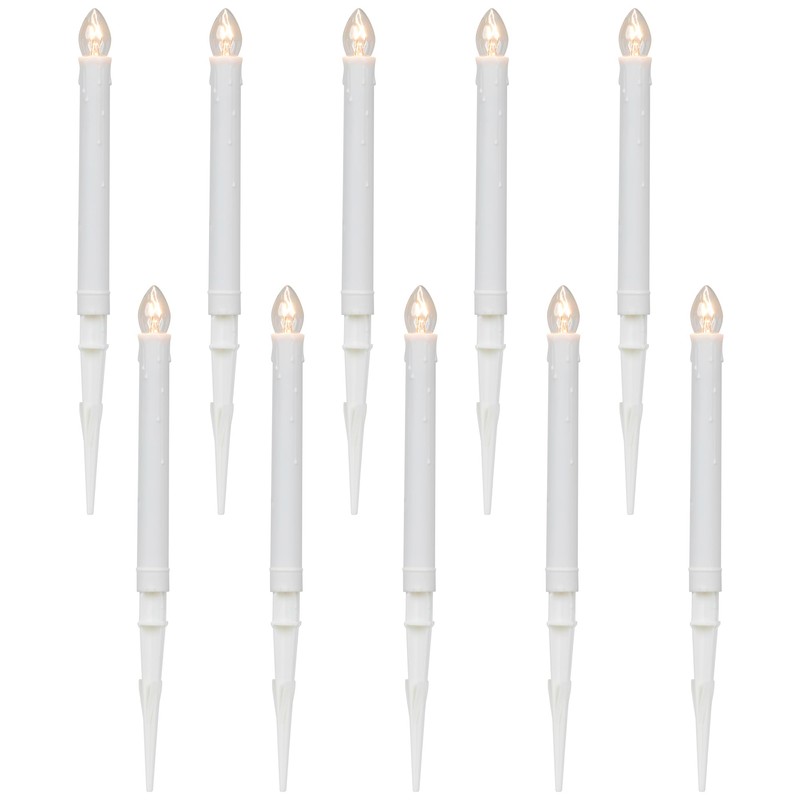 10 White C7 Candle Pathway Markers Christmas Lights - 8" White Wire