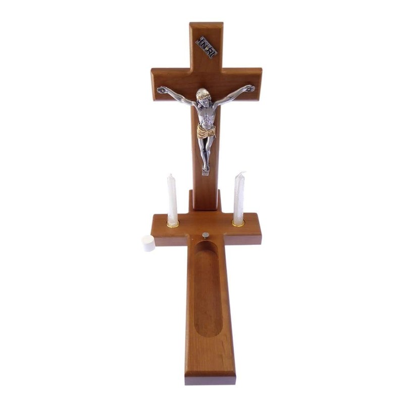 - You can take the cross with you and stand the cross while accessing the candles and bottle inside