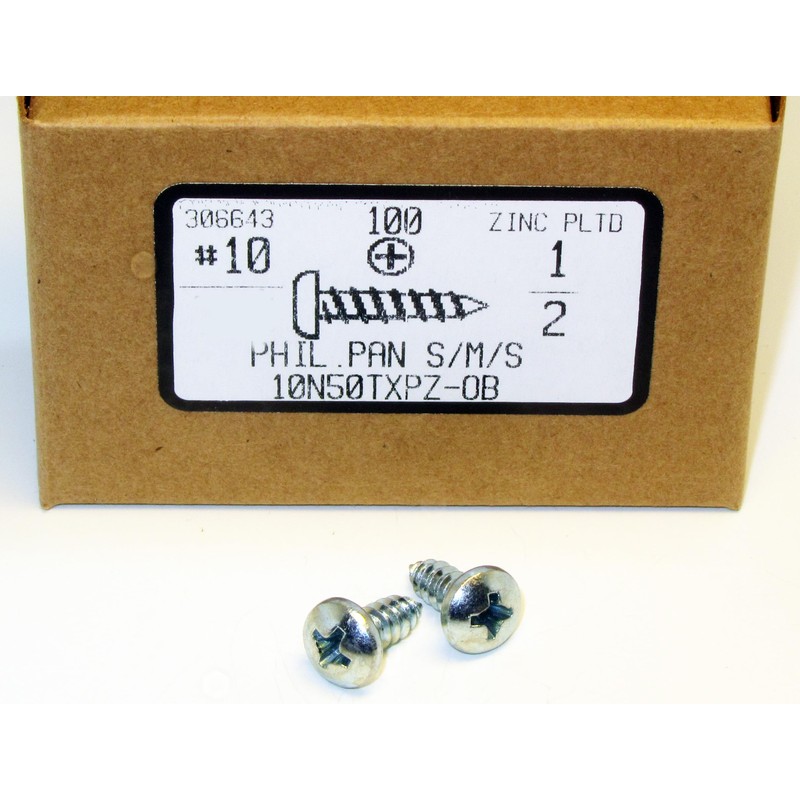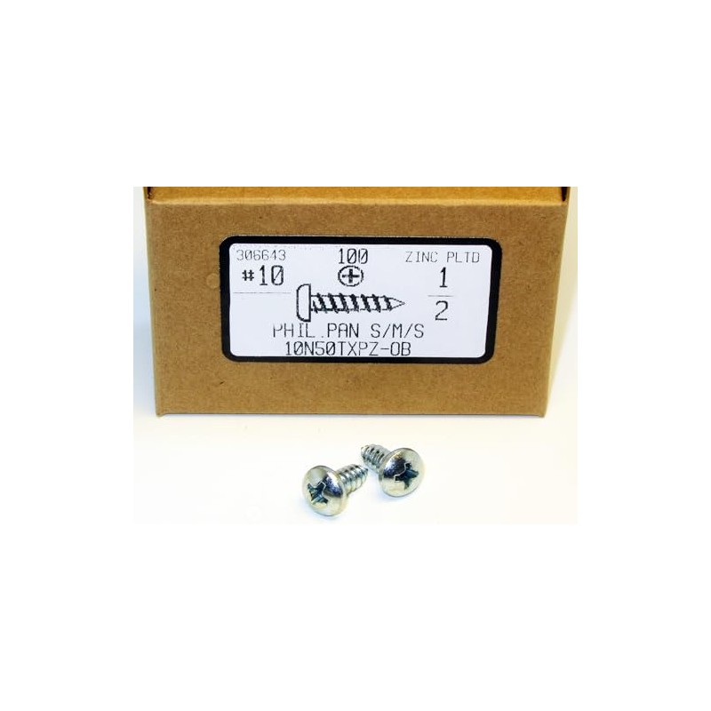 - PHSMS Sheet Metal Screw, Pan Head Phillips, #10 X 1/2 in, Zinc Plated Steel, Pack of 100, phsms, diy, hard to find