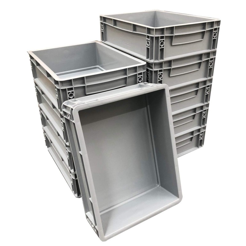 10 x 10 Litre Heavy Duty Plastic Stacking Euro Storage Containers Boxes Crates GREY (Pack of 10)