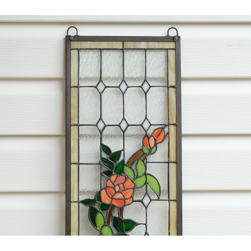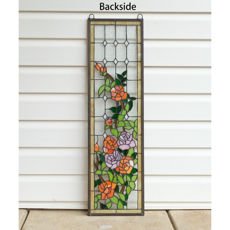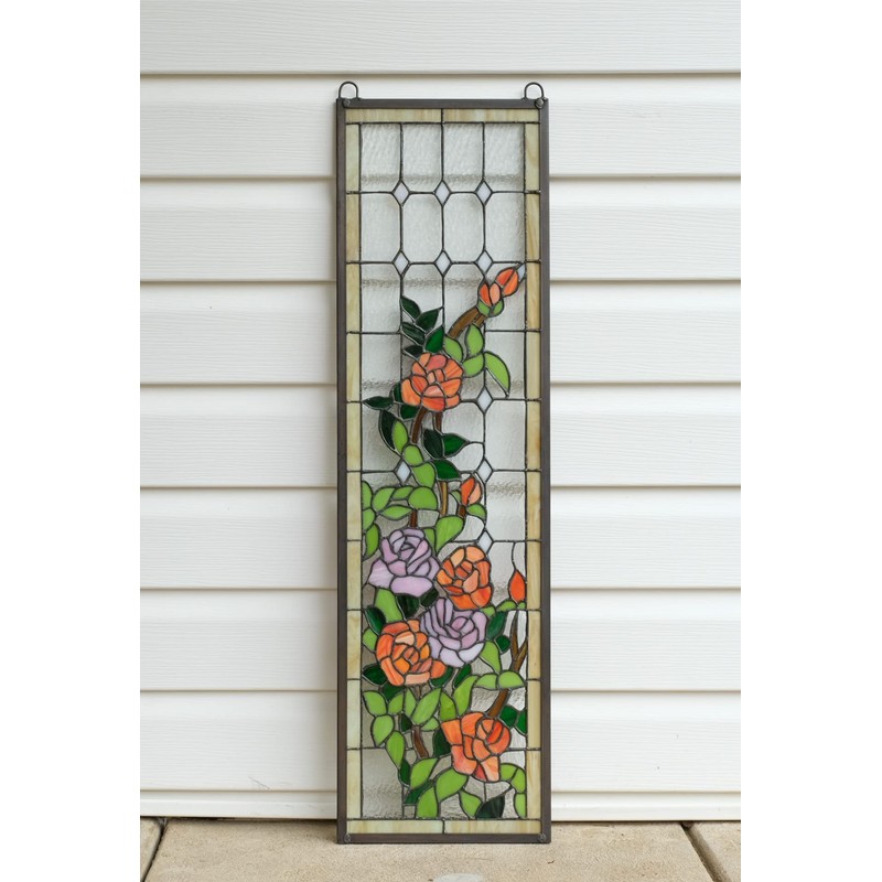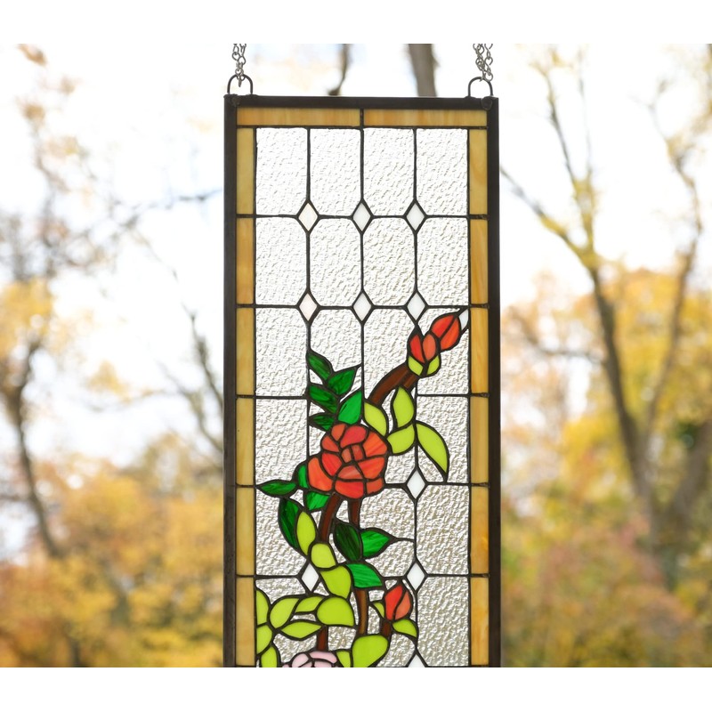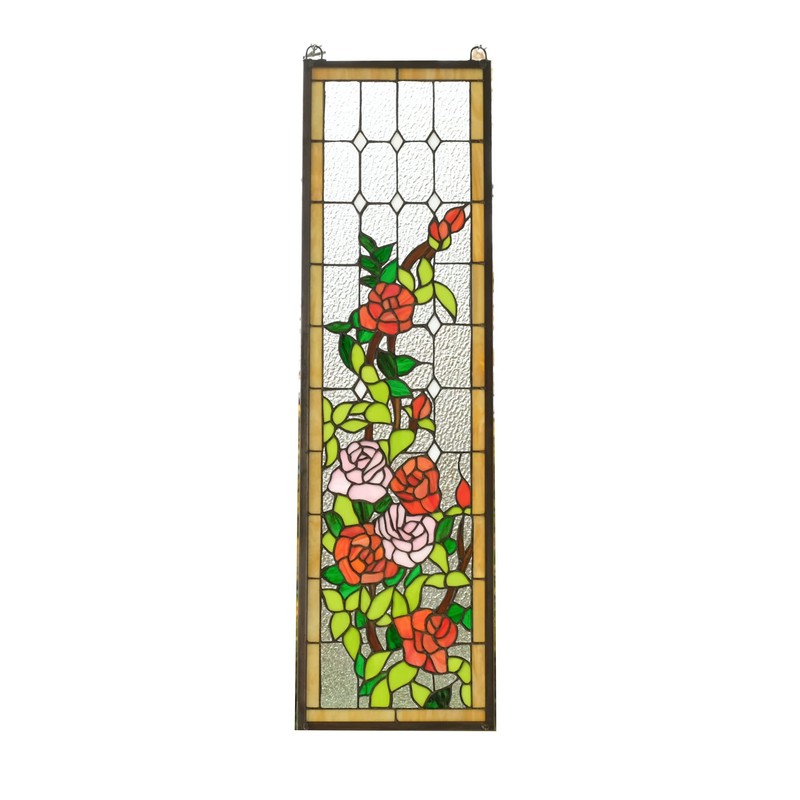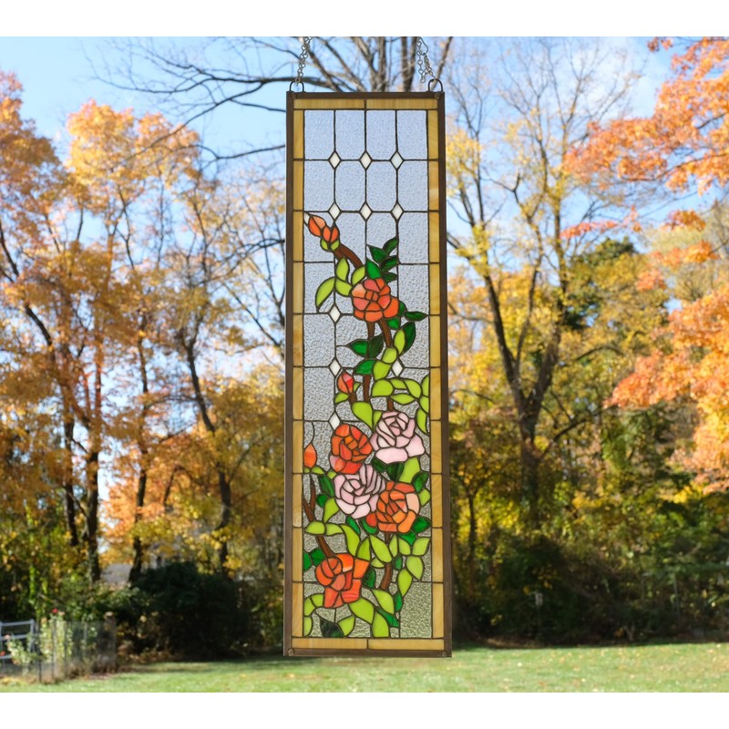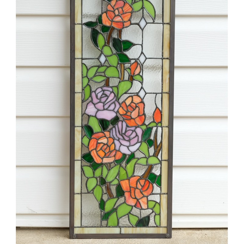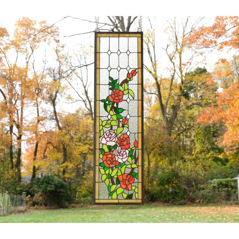 10" x 35.5" Handcrafted Hanging Stained Glass Window Panel Rose Flowers
