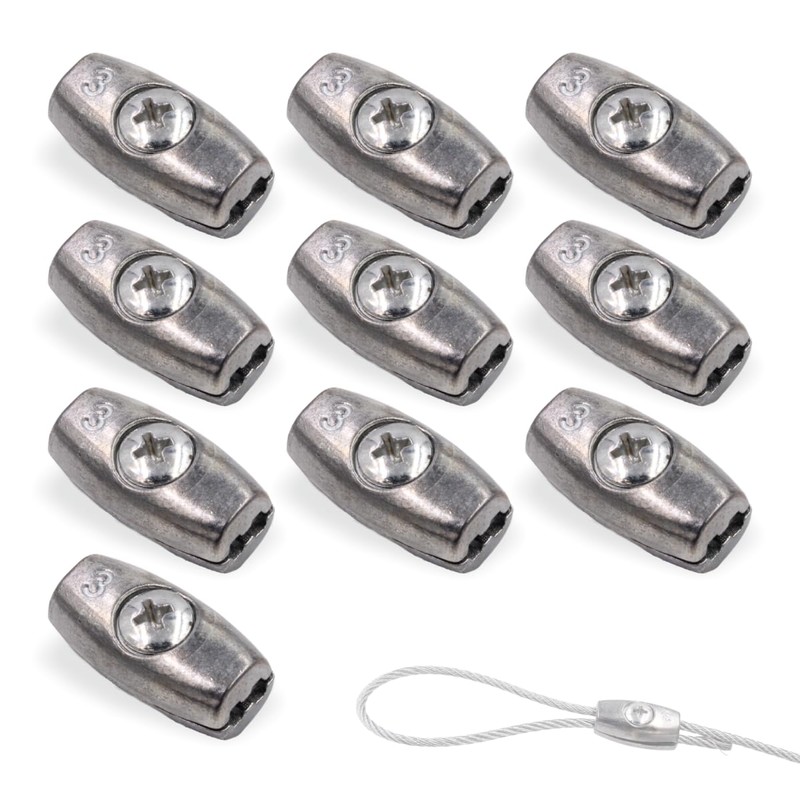 Discover our high-quality egg shape wire rope clamp in a practical set of 10 - perfect for ropes up to diameter 3.0 mm. Made from durable die-cast zinc and electro-galvanised, these wire rope clips offer maximum stability and durability. The easy handling with cross screw allows for quick installation - ideal for home and professional use. With their compact design and precise M5 thread, they ensure a secure attachment of your wire ropes.