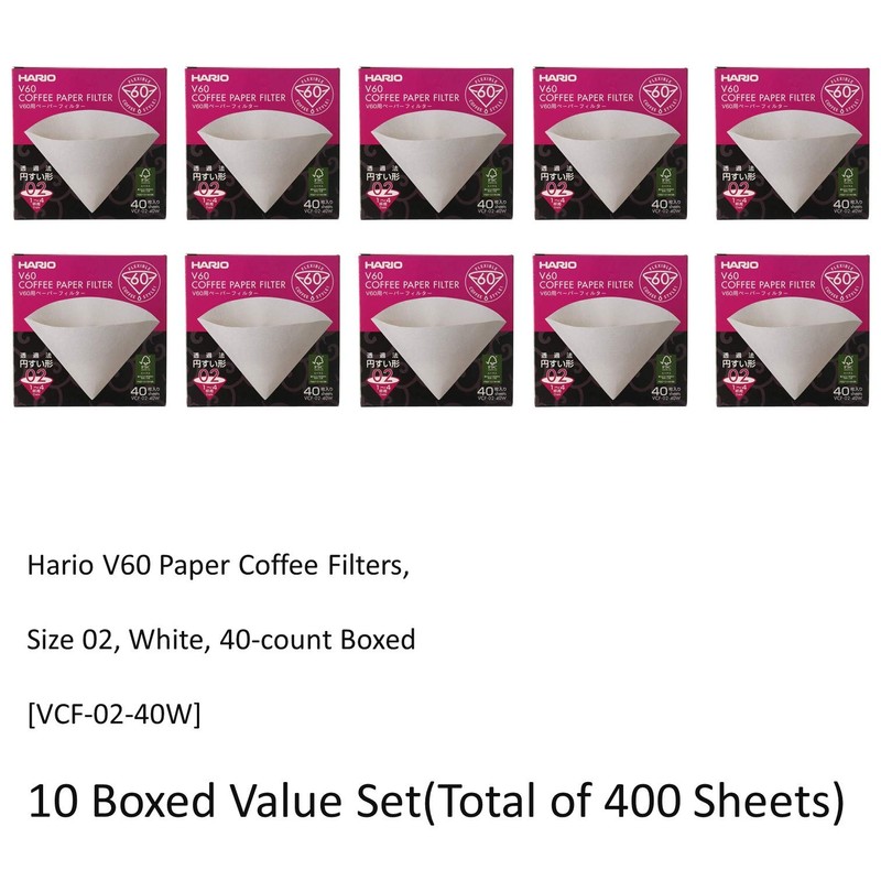 10 X Hario V60 Size 02 40-Count Boxed Coffee White Paper Filters, 10 Boxed Value Set (Total of 400 Sheets)