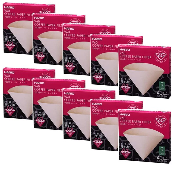 10 X Hario V60 Size 03 40-Count Boxed Coffee Natural Paper Filters, 10 Boxed Value Set (Total of 400 Sheets)