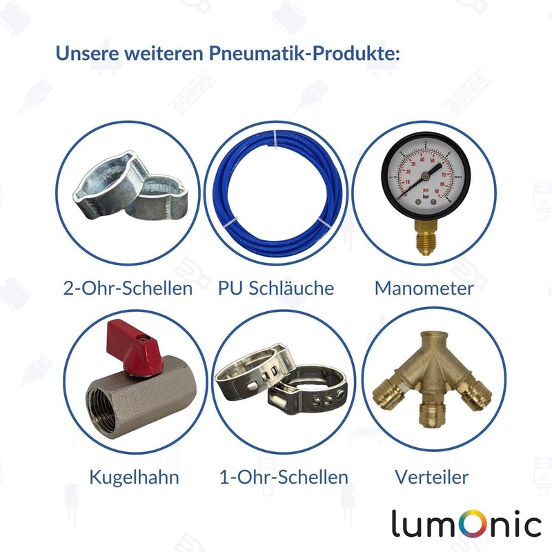 - Versatile use: ideal for pneumatics, compressed air, mechanical engineering, automation, automotive industry and workshops, both for professionals and DIY enthusiasts alike.