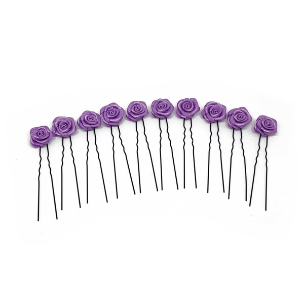 10 x Rose Flat Hair – Hair Pin – Bride Bridesmaids Prom Headband Various Colours purple