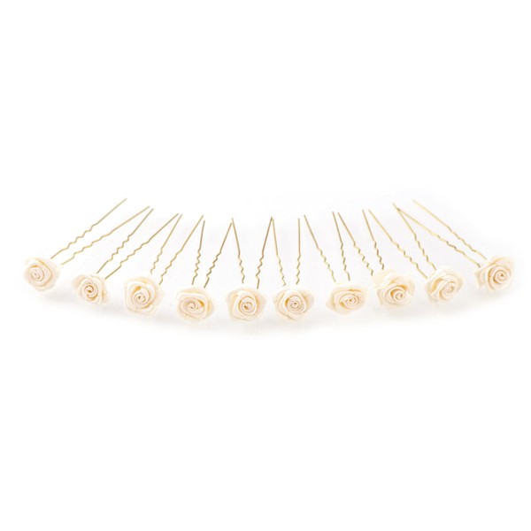 10 x Rosen auf Haarnadel - für tiefe Haarpartien - Brauthaarschmuck | G-T - Beige