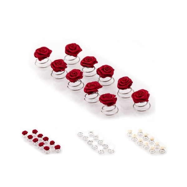 10 x Rosen Curlies - Brauthaarschmuck - Curlie - Haarschmuck | Bordeaux Rot