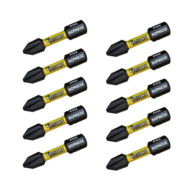 10 x SabreCut SCPH232_10 32mm PH2 Magnetic Impact Screwdriver Driver Bits Set Phillips Heavy Duty