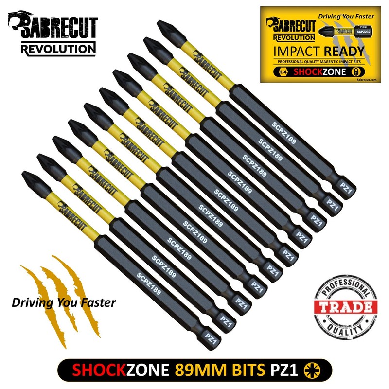 • SabreCut Revolution professional quality PoziDriv (PZ1) screwdriver bits specially designed for use with impact drivers, bits have a forged tip for greater impact resistance and a longer lifetime