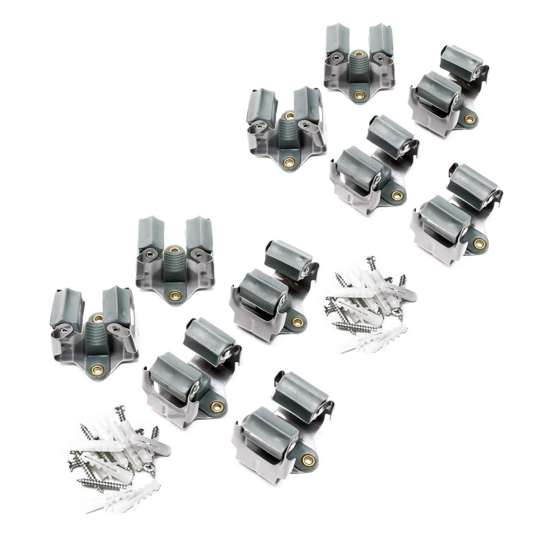 This set includes 10 flexible universal holders that can also be used in garages, garden sheds or workshops.