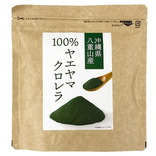 - 100% ヤエヤマ クロレラ は、八重山諸島の石垣島で屋外培養されたクロレラ100%の粉末です。