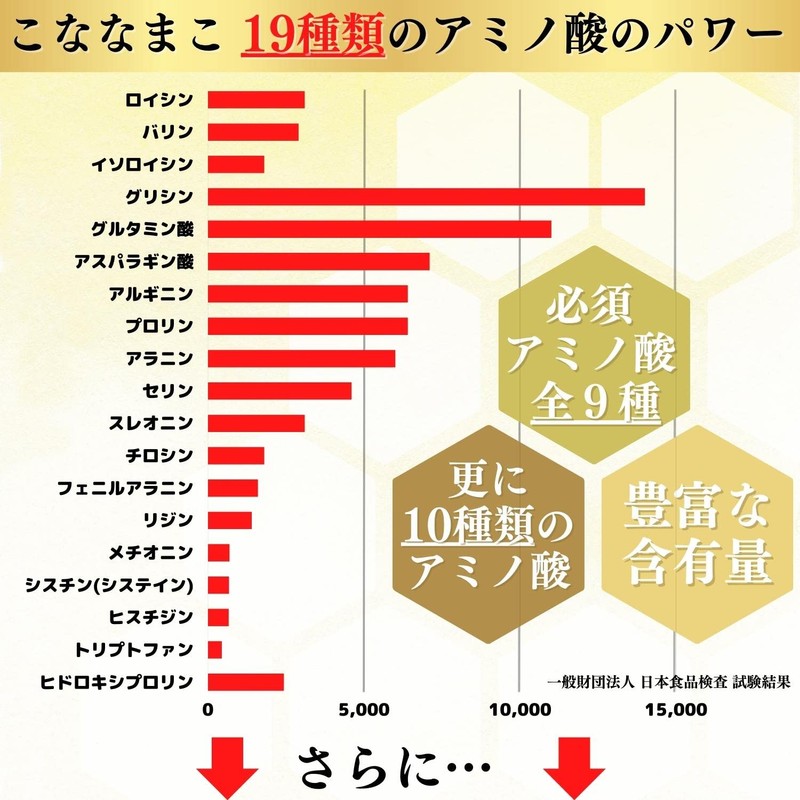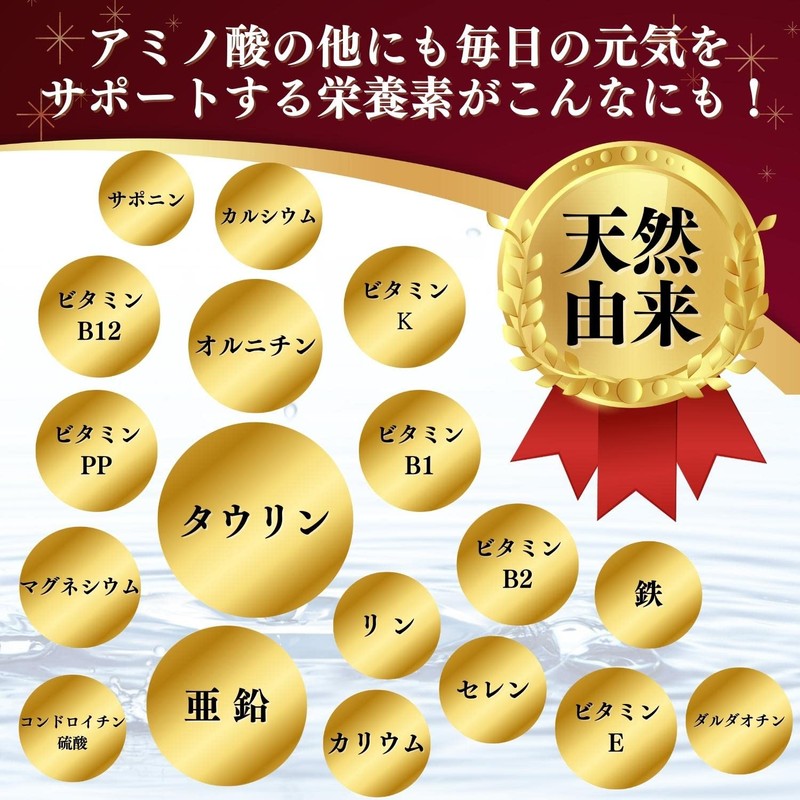- 【18種類のアミノ酸も豊富】1日の摂取量は黒ニンニクの12片分に相当します。コラーゲンを主成分として、18種類のアミノ酸を豊富に含んでいます。そのうち、体内で作ることが出来ず食事からの摂取が必要な、9種類の必須アミノ酸が豊富に含まれており、手軽に摂取できます。【コンドロイチン硫酸】【アルギニン】【アスパラギン酸】も豊富に含んでおり、天然成分で摂取できます。