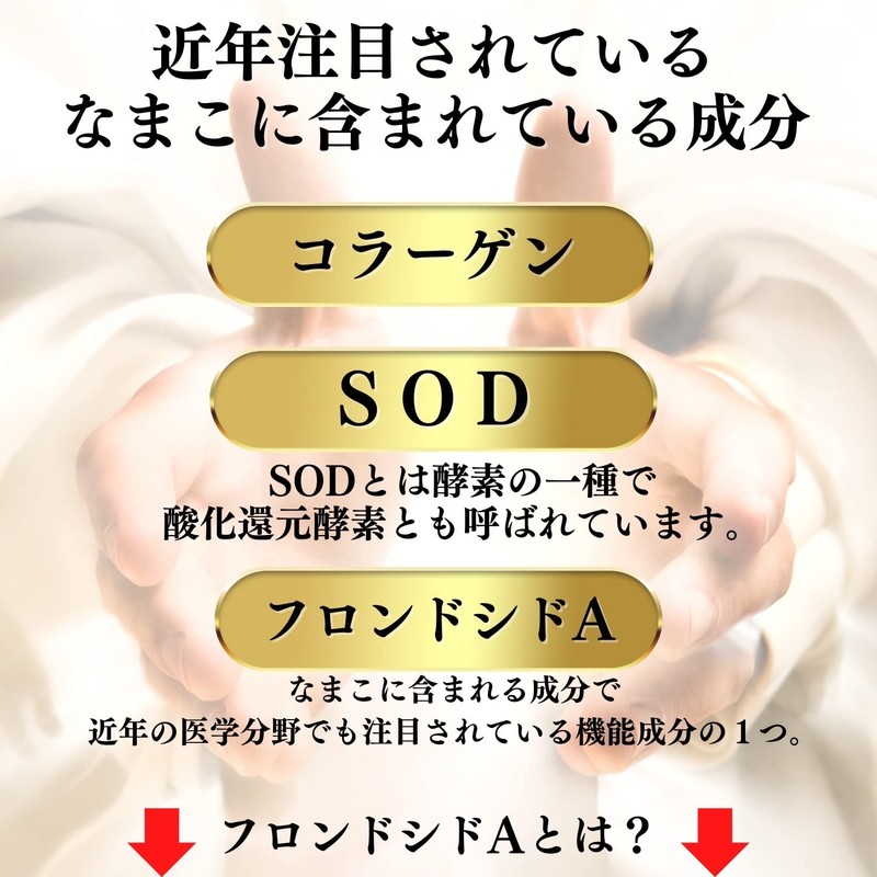 - 【フロンドシドA】 今、注目されている成分 フロンドシドA なまこに多く含まれています。