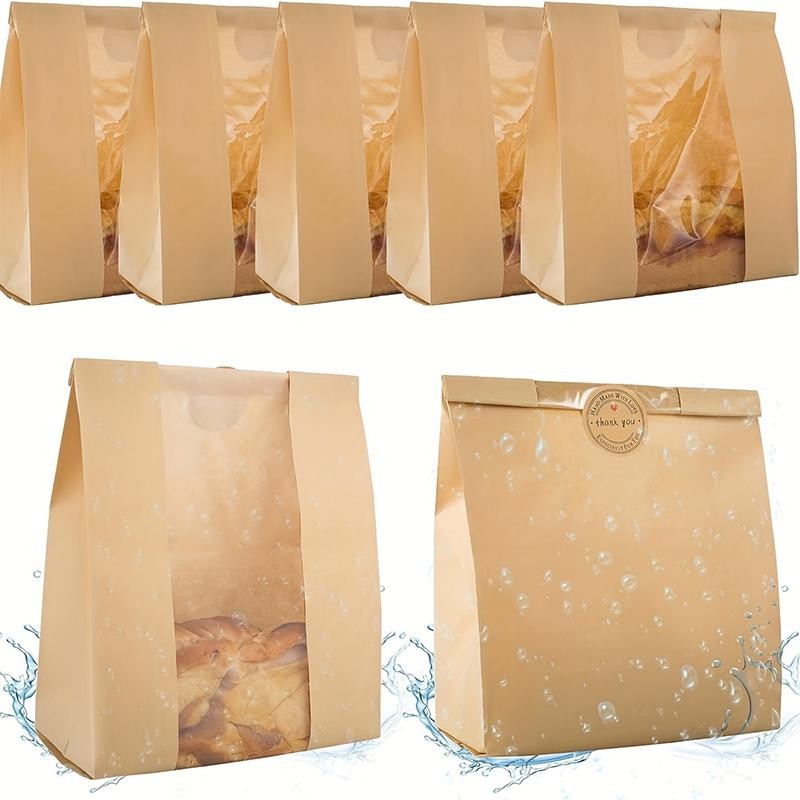 100/150/200 PCS Large Paper Bread Bags, 13.7 x 8.2 x 3.5 Inches Bakery Bags with Window, Homemade Bread Loaf Bags with Seal Stickers, Baking Supplies Bakeware Utensils:_100pcs
