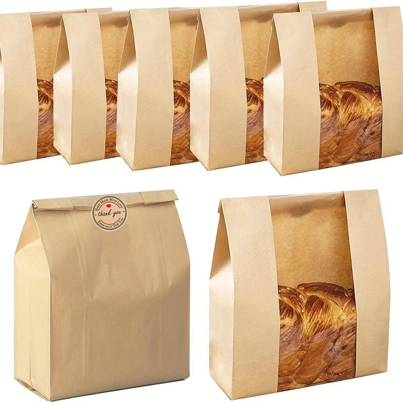 100/150/200 PCS Large Paper Bread Bags, 13.7 x 8.2 x 3.5 Inches Bakery Bags with Window, Homemade Bread Loaf Bags with Seal Stickers, Baking Supplies Bakeware Utensils:_150pcs