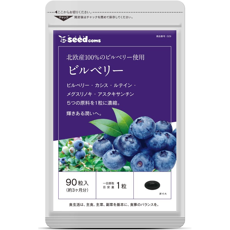 シードコムス 北欧産100% ビルベリー サプリメント ルテイン カシス 約3ヶ月分 90粒