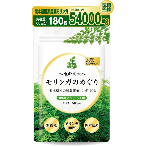 - ✅【医師監修】モリンガのめぐりは、活力のある毎日をサポートする完全無農薬の熊本県産モリンガ6粒で1800mg・180粒で54000mgを配合したモリンガ含有量が国内トップクラスのサプリメントです。 医師の監修を受けて規格・製造に徹底的にこだわりました。
