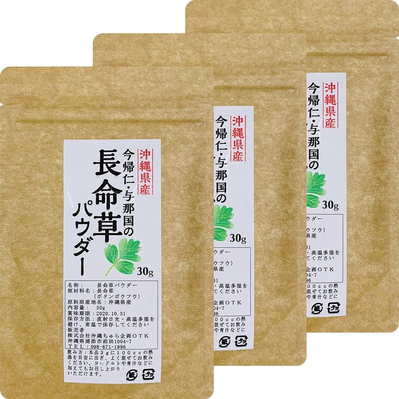 【注目の栄養成分!「クロロゲン酸」含有】沖縄県産100%長命草パウダー(30g×3袋)