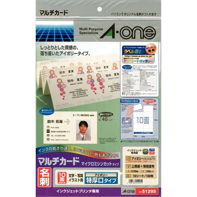 エーワン マルチカード 名刺 アイボリー 特厚口 100枚分 51295