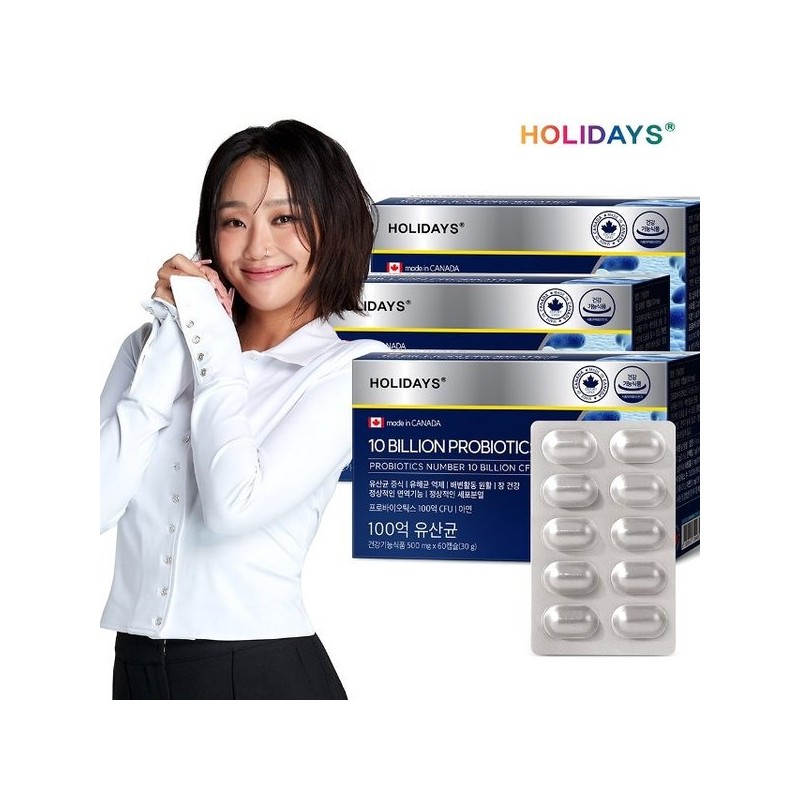 [홀리데이즈] 100억 유산균 60캡슐 3박스 (6개월분) [Holidays] 10 Billion Probiotics 60 Capsules 3 Boxes (6-Month Supply)